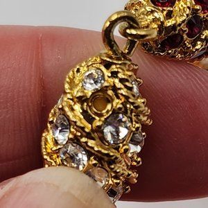 Gorgeous recreation of Jackie O's "Royal Egg" bracelet by Camrose and Kross. The bracelet comes with an additional link that can be added or removed to adjust the length of the bracelet. There are 2 missing clear rhinestones, but those can be replaced from the extra link if needed.
