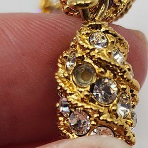 CONDITION: Missing 2 rhinestones, but otherwise it's in excellent condition. The box clasps are in near-prostine shape.