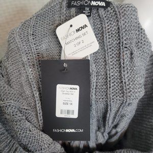 Can You Knit It Sweater Set - Color: Heather Grey, Size: 1X