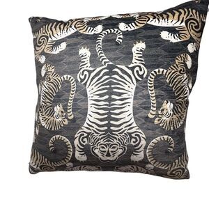 Keywords: Canaan, throw pillow, exotic style, wildlife theme, animal print, tiger print, multicolor, embroidered, high-quality fabric, duck feathers, living room decor, USA made, new with tags.