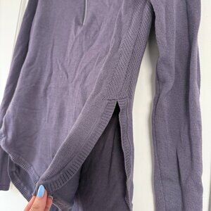 Canada Goose 1/4 Zip Sweater Double Layer Collar Merino Wool Open Knit Thistle Purple Midweight