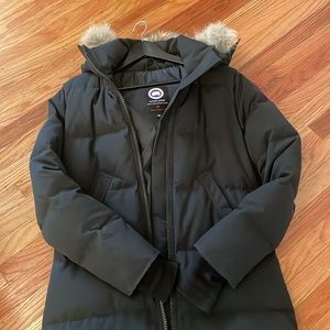 Canada Goose Black Long Down Coat with Fur Trim