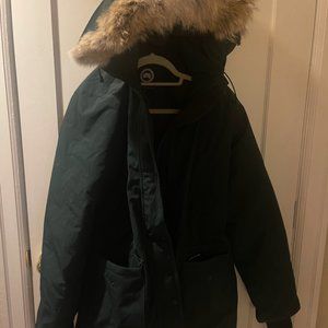 Lovely hunter green parka in a size XL. I bought this coat & gained some pandemic weight. Need a winter jacket that will zip up :-) Basically new. Discounting price to hopefully get the jacket sold & buy a new one before snow shoeing season is over!