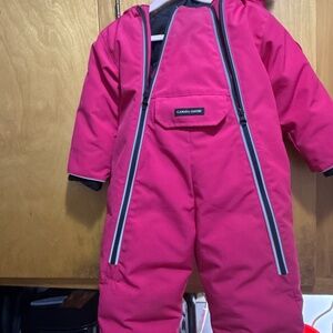 Pink Canada Goose Snowsuit One piece with fur on the hood. Size