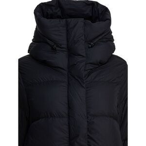 Canada Goose "Montgomery Jacket," featuring a short construction with padding, presents a regular and compact silhouette. The garment is made primarily of polyamide, with an adjustable hood using internal drawstrings. Two front pockets are integrated into the construction, while knit cuffs complement the sleeves for a snug fit. The waist is adjusted by an internal drawstring system.