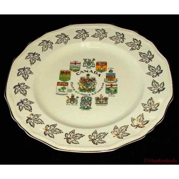 Collectible Alfred Meakin Canada Coats of Arms souvenir ivory and gold plate...made in England...in good pre-owned condition...no chips or cracks...has some gold paint on backside-see photos.....measures about 9.75" in diameter.