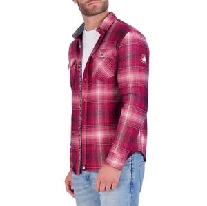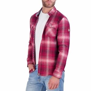 Canada Weather Gear Men's Flannel Button-Down Chambray Lined Collar Red/White L