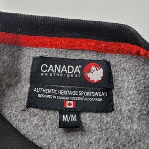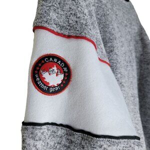 This medium-sized Canada Weather Gear Sweatshirt Pullover in gray with red accents is perfect for sportswear. Made for women, it offers comfort and softness during cold weather.