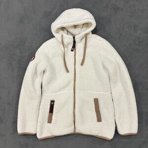 Canada Weather Gear White Sherpa Fleece Hoodie Full Zip Drawstring Womens Size S