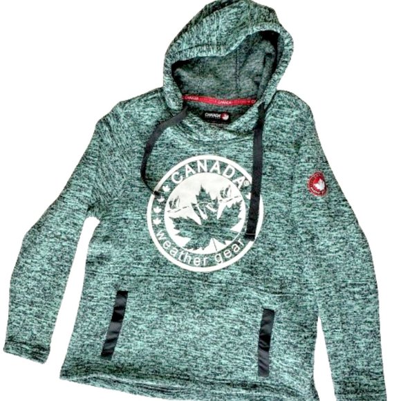 Canada Weather Gear Women M Goose Design Green Hooded Thick Heavy Sweatshirt