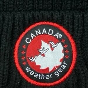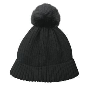 Canada Weather Gear Women's Black Rib Knit Pom Pom Logo Patch Beanie Cap Hat OS