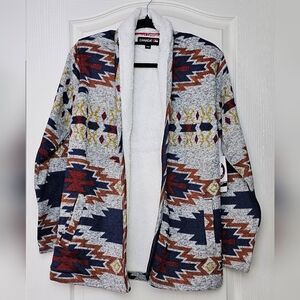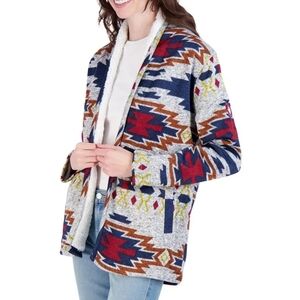 Canada Weather Gear Womens Sherpa-Lined Aztec Pattern Open Cardigan Jacket