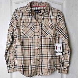 Canada Weather Gear Women's Unlined Flannel, Tan & Black, SMALL