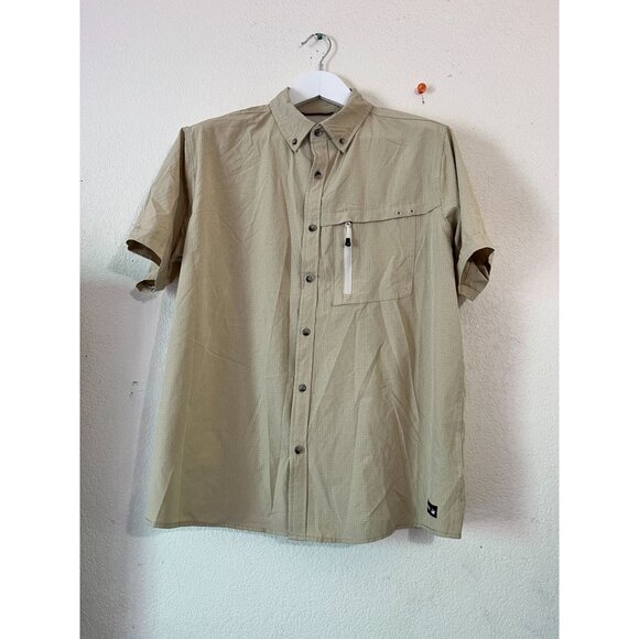 Canada Weathergear Mens Beige Short-Sleeve Button-Down Shirt Large Vented Back