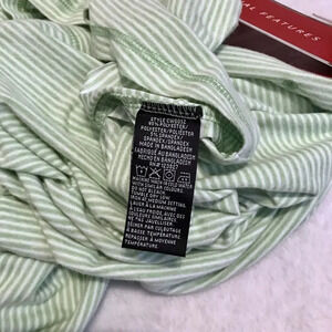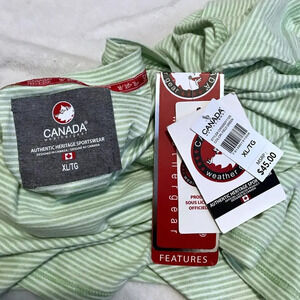 NWT. Short Sleeves Shirt for Men Size XL. Stripes - mint green and white, 1 front chest pocket, crewneck, patch brand logo left sleeve and bottom left side, as per tag "supreme soft, 2 way stretch, quick dry, moisture away", sustainable, embroidered vent hole by pits. Pictures are part of description.