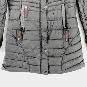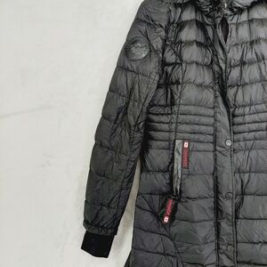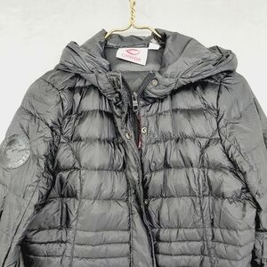 preowned Brand: Canada Weathergear Style: Down Jacket Size: Small Color: Black Material: Shell: 100% Nylon Coating: 100% Polyurethane Lining: 100% Nylon Filling: 80% Duck Down, 20% Duck Feathers Hood Faux Fur Trim: 87% Acrylic, 13% Polyester Design: Quilted pattern for added warmth Front zipper and button closure Multiple zippered pockets