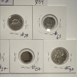 Explore this exquisite collection of Canadian coins, featuring a variety of designs and historical significance. Perfect for collectors and enthusiasts alike. Collection of Canadian mix lot of 10 coins dates beginning from 1976 to 2012 with an assortment of various one cent 25 $ five cent and $.10 Maple leafs and cent coins.