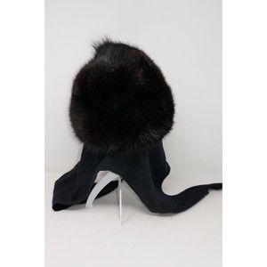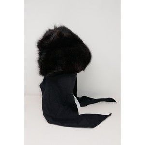 Canadian Hat Mfg Co 1980's Black Muskrat Fur Hat with Wool Scarf Ties