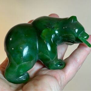 Canadian Nephrite Jade majestic Grizzly Bear with fish sculpture