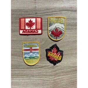 Canadian Patch Lot Of 4 Iron On Alberta Banff Embroidered Maple Leaf Vintage