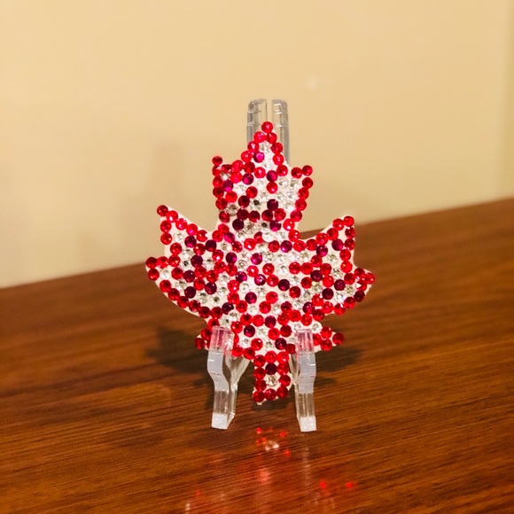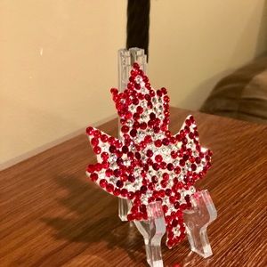Original handmade clay Canadian Maple Leaf adorned with Swarovski crystals