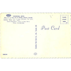 Canadiana Motel Hwy 2, 1/2 Mile East of Whitby Ontario Canada Postcard