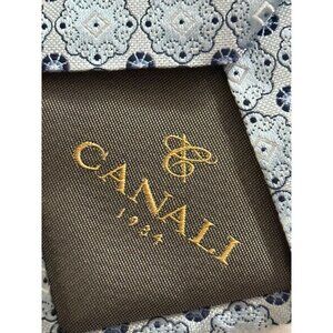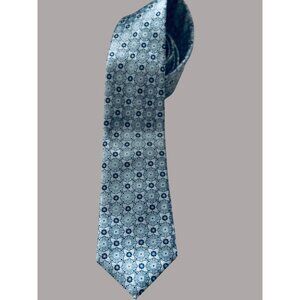 Canali 100% Silk Tie Made In Italy Blue & Silver Geometric Pattern Mens Accessor