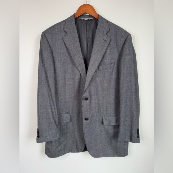 Canali 100% Wool Light and Dark Gray Micro Check Classic 2 Button Blazer Sz 46L