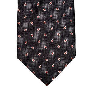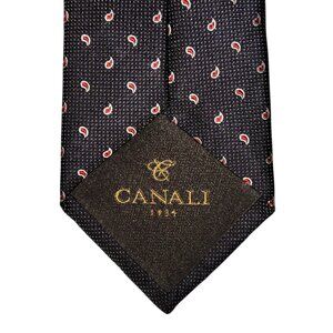This Canali 1934 necktie is in very good pre-owned condition. No holes, stains or damage. 100% silk, made in Italy. Gray, red, and silver colors, paisley pattern. Colors may vary slightly due to lighting, fabric textures and computer/mobile settings.