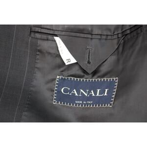 Canali Blazer Men’s US 46R / EU 56R Black Striped 100% Pure Wool Three-Button Suit Jacket.