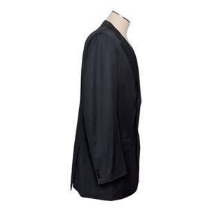 This single-breasted blazer features a solid black color with a notch lapel and a classic 1-piece design. Made with high-quality materials and impeccable craftsmanship, this blazer exudes an Italian flair and a touch of normcore style. The fit is tailored to a regular size 42 chest, making it a versatile and timeless addition to any man's wardrobe. Perfect for the fall, winter, or spring seasons, this blazer is a must-have for those who appreciate quality and elegance in their clothing choices.