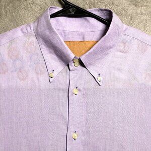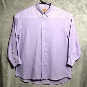 Canali Dress Shirt Mens XL Purple Linen Long Sleeve Button Down Made in Italy