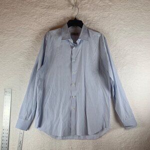 Canali Men's Blue Striped Long Sleeve Button Down Casual Shirt Size 43-17 9260
