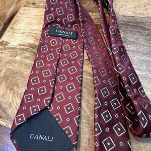 Canali Men's Red 100% Silk Geometic Print Neck Tie