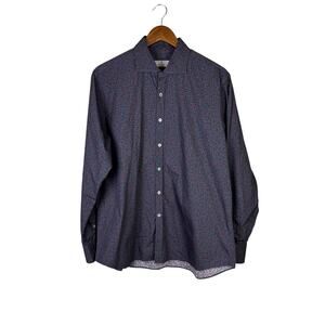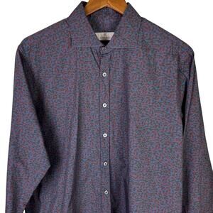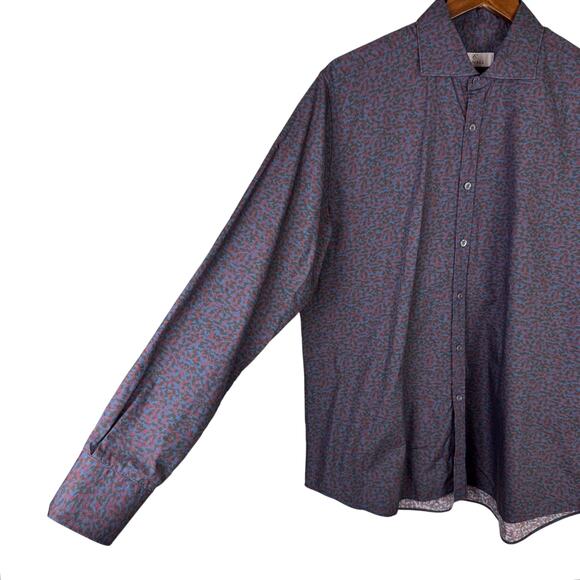 Canali Mens Red and Blue Camouflage Pattern Long Sleeve Button Up Dress Shirt