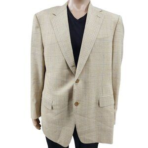 Canali Mens Two-Button Beige Plaid Wool Blazer Jacket Size 44R