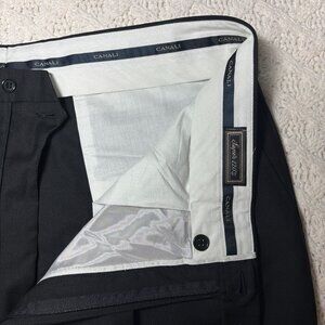 Elevate your wardrobe with these Canali Super 120's men's pleated $650 dress pants, meticulously tailored in Italy. Crafted from 100% pure wool, these luxurious trousers provide superior comfort and a refined look. The pants feature a classic pleated front for timeless style, along with a hook and button closure for a secure fit. With their sleek black color and impeccable craftsmanship, they are a versatile addition to any formal or business attire. The interior waistband boasts Canali branding, underscoring the premium quality of this garment. Care instructions indicate dry cleaning only.