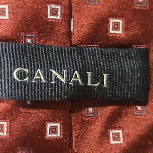 Canali Men's Luxury Tie Red Geometric 100% Silk 3.50" Great Condition Barely Worn See Pictures For More Details.