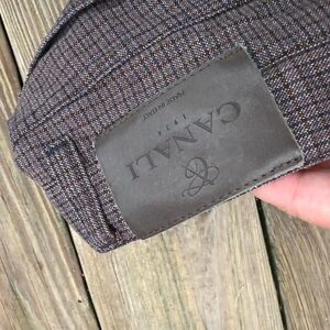 Canali Pants Mens 48 Navy brown plaid Dress Trouser Travel Made In Italy