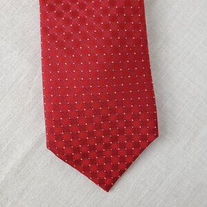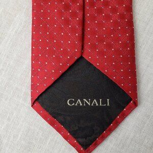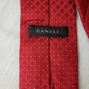 Canali Made in Italy Red Dot Jacquard Textured Squares Silk Tie