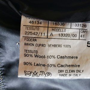 Made in Italy using Italian fabrics. 90% Wool/ 10% Cashmere. This Canali is in near new condition minus the tags. It was purchased from Harry Rosen, a fine clothing store in Canada. This jacket is in flawless condition. The Herringbone jacket it one of the easiest patterns to wear. It has been a long mainstay in a mans wardrobe. It can be worn dressed up with many different colors of pant options available. It can be layered with a vest or more modern with a nice cashmere hoodie. It can be dressed down with a nice pair of jeans and nice shirt for a smart combo ready to meet friends at the local coffee shop. The Herringbone "look" has a very collegiate feel. It adds a certain confidence to any man wearing it. This Canali sport coat has a very special fabric. Although the color looks gray and basic in design, when you really look at it, it also has elements of Blue, and Tan along with the classic black and white herringbone design. 42R (54R)