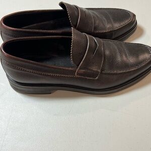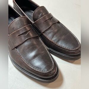 Canali Size 8 Pebble Brown Penny Loafers Genuine Leather Made in Italy Shoe