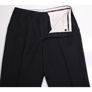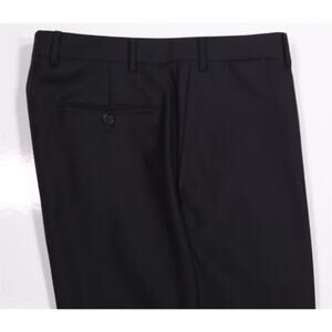 Canali Solid Black Twill Flat Front Wool Dress Pants Trousers 34x29