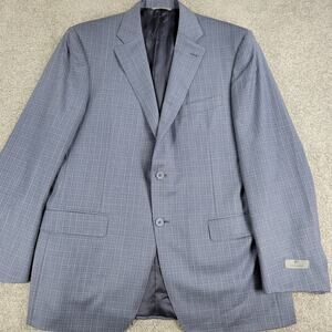 Canali Suit Jacket Mens 54L Steel Blue Wool Cranberry Grid Lined Italy New