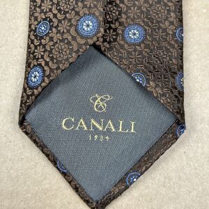 Canali Tie 59” x 3” Silk Bronze Floral Geometric Made In Italy