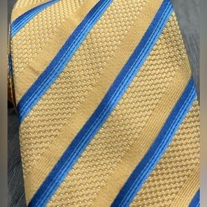 Canali Tie Made in Italy 100% Silk Yellow Navy Stripe Power Business Summer