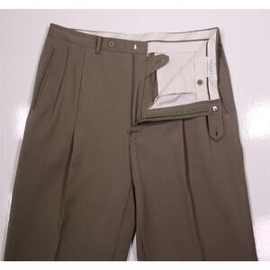Canali Vintage 1990's Tan Pleated Classic-Fit Wool Dress Pants Trousers 34x27