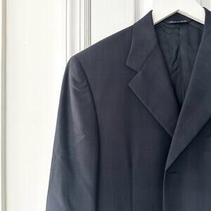 Canali for Bloomingdales Navy Blue Grid Pure Wool Three Button Suit Jacket 50R