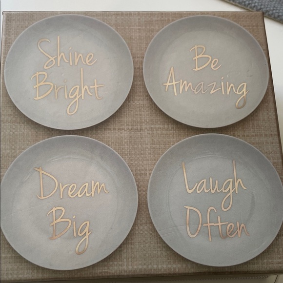 Elegant white plate with four different texts on the plate. See pictures for the sayings. Perfect for uplifting decor.