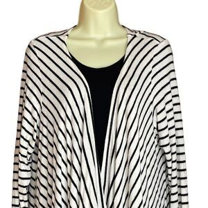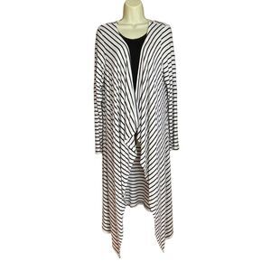 Brand/Title: Canari Longline Black Off White Stripe Open Drape Sweater Cardigan